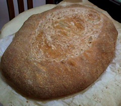 做麵包從開始到可以吃往往是一天以後的事。就義大利鄉村麵包而言,先做的老麵要置入冰箱至少一個晩上,所以即使開始和麵那也是明天的事,再來是更慢長的發酵等待,總共要約四小時,之後才入烤箱烤約45分鐘。等這麵包完成時,那已經是半夜了。所以啊,以後如果在餐廳吃到餐廳自己做的鄉村麵包,我們在心裡還真的是要給他鼓鼓掌,這表示他們可能是清晨一大早就開始忙了。